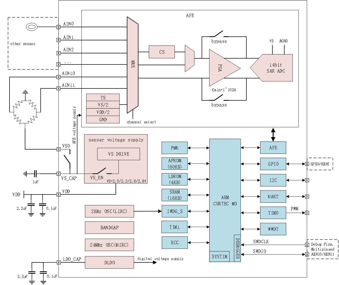 14位SAR ADC,典型速率250KSPS,最快(kuài)支持500KSPS