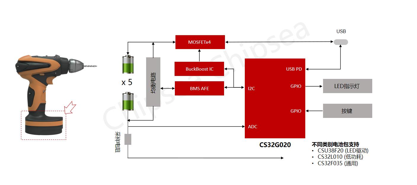 随着電池包技術(shù)的叠代升級,各類小型化、無繩化、锂電化的電動工(gōng)具大(dà)量湧現,例如(rú)戶外電源、電動工(gōng)具等新設備,因其便攜易用、穩定可(kě)靠,迅速成爲市場主流。爲了确保電動工(gōng)具中高容量、大(dà)功率電池包的使用安全及壽命,需要采用專門(mén)的MCU和BMS芯片,進行充放(fàng)電及電池均衡管理(lǐ)。