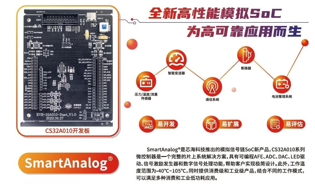 Smart Analog®品牌産品CS32A01X系列兼具信号處理(lǐ)和邏輯判斷能力,能夠廣泛應用在視覺、聲覺、觸覺、光(guāng)電、酸堿度、自(zì)然環境和人(rén)體(tǐ)信号等多維度感知測量場景。