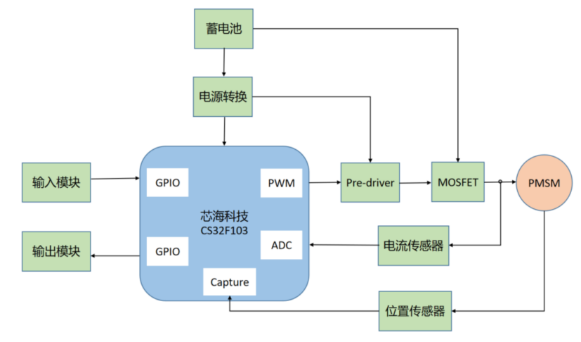 永磁同步電機(jī)控制系統硬件(jiàn)框圖