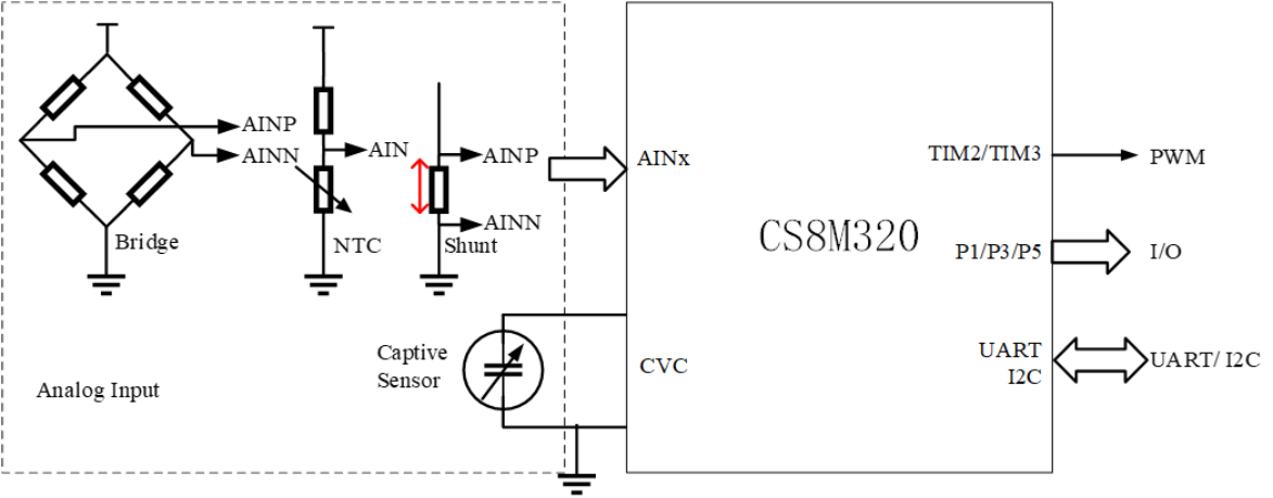 芯海科(kē)技全新推出CS8M320(簡稱M320)系列的經濟型信号鏈MCU 。該MCU集成了12位全差分(fēn)ADC、低溫漂基準、電容測量模塊CVC等信号鏈模塊,精準滿足常規的電壓、電流、溫度、電容信号測量需要 。同時,M320還(hái)提供标準通信接口(I2C和UART)以及PWM輸出,爲用戶提供豐富的信号輸出選項。