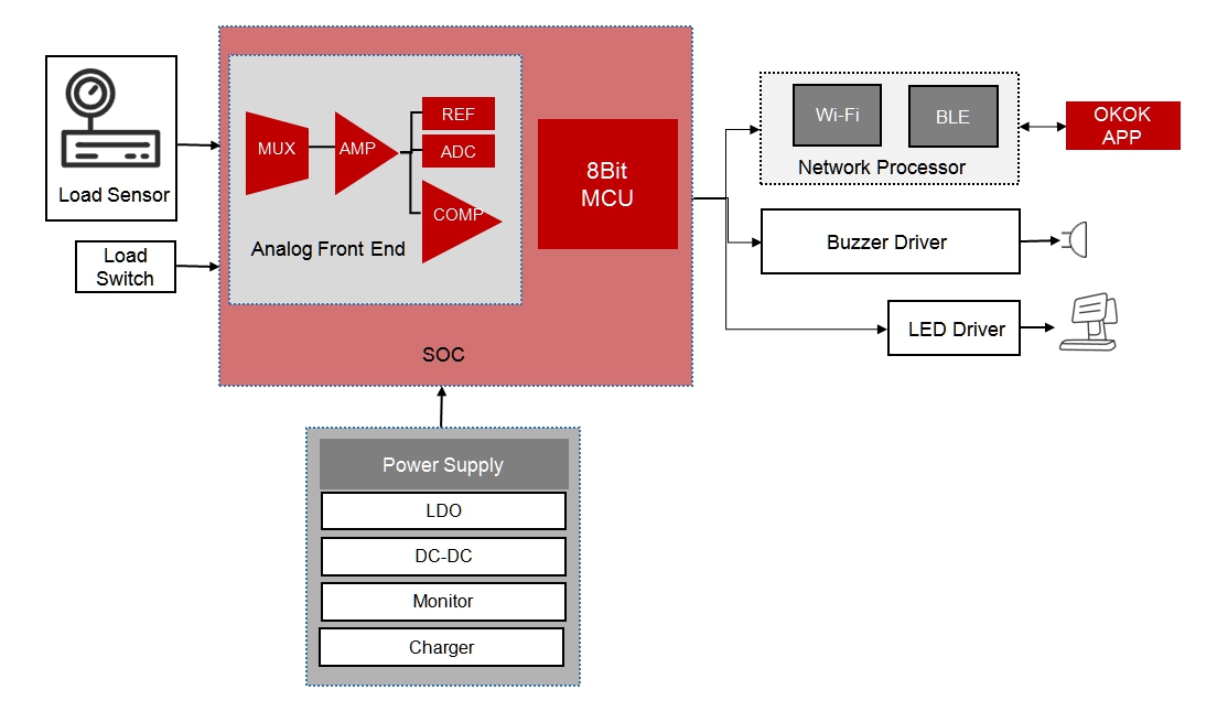 營養秤主要由ADC芯片、壓力傳感器和主控芯片等元器件(jiàn)組成。主要實現電子秤的稱重、過載提示、自(zì)動歸零、去(qù)皮稱重、壓低報警等功能。它的精确值可(kě)做到分(fēn)度值0.1g的精準稱重。